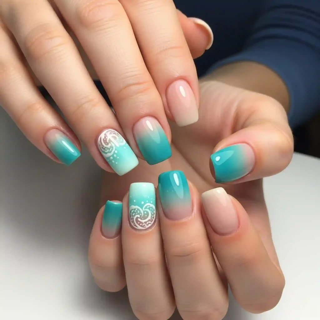 Capture the serene beauty of the sea with a gradient that blends soft blues, teals, and sandy nudes. Add subtle wave details or tiny seashell accents for a beachy vibe.
