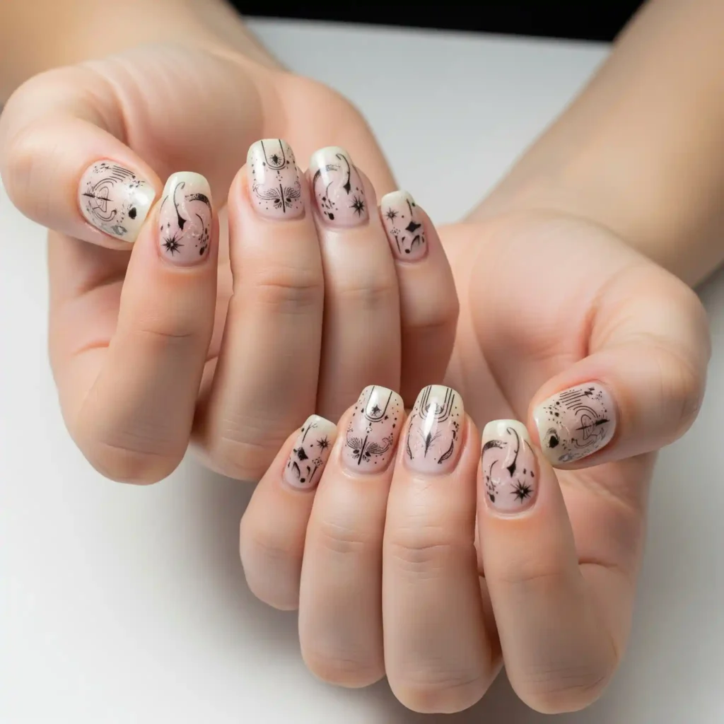 For intricate designs without the freehand effort, embrace delicate nail decals featuring everything from celestial motifs to minimalist line art.