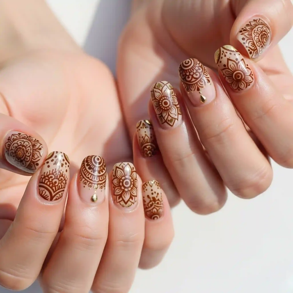 Embrace free-spirited vibes with intricate floral mandalas, delicate henna-inspired patterns, and earthy tones accented with touches of gold. This trend is perfect for festivals and sunny getaways.