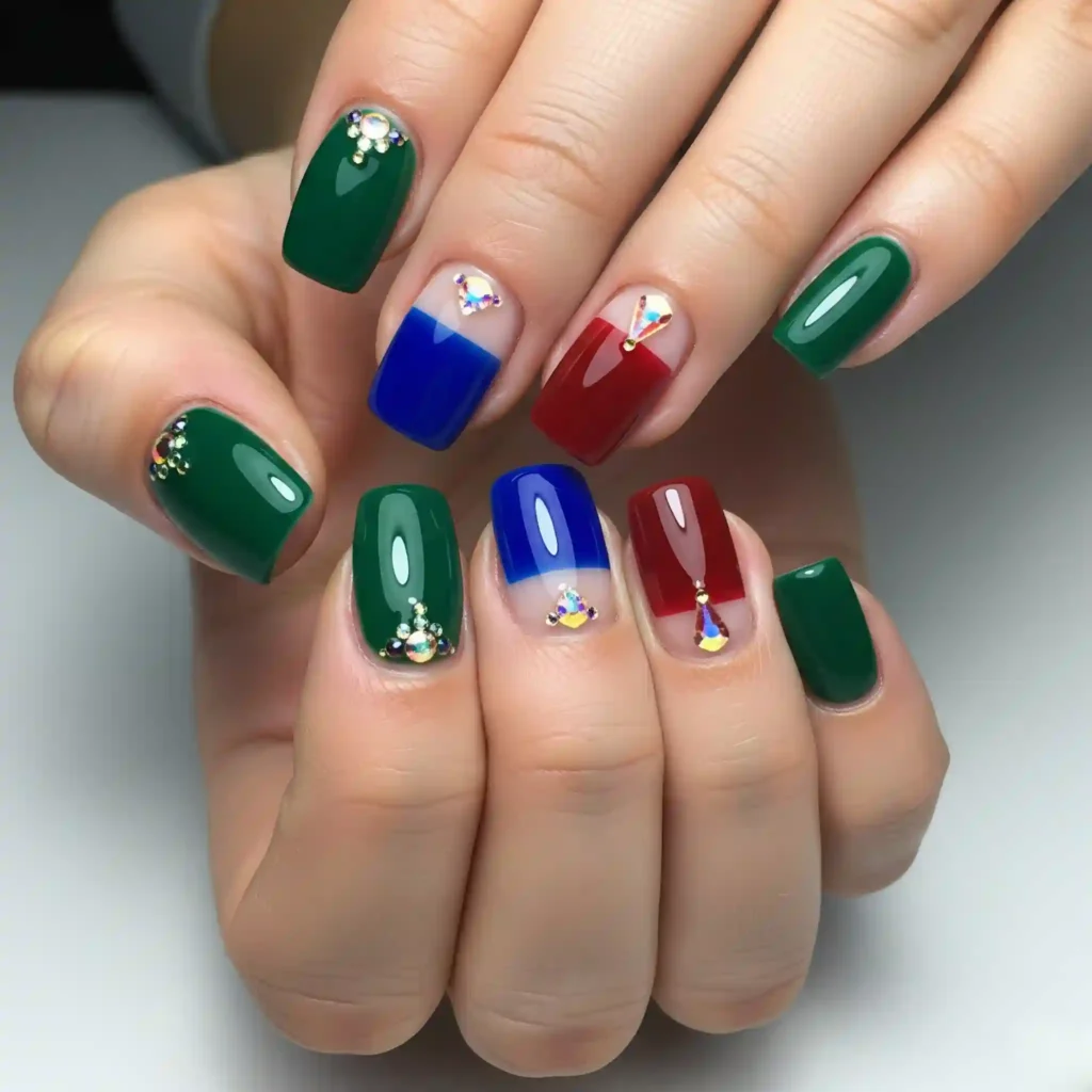 Rich emerald greens, sapphire blues, and ruby reds are making a comeback, but with a modern twist. Think glossy finishes, unexpected negative space, and subtle gemstone embellishments.